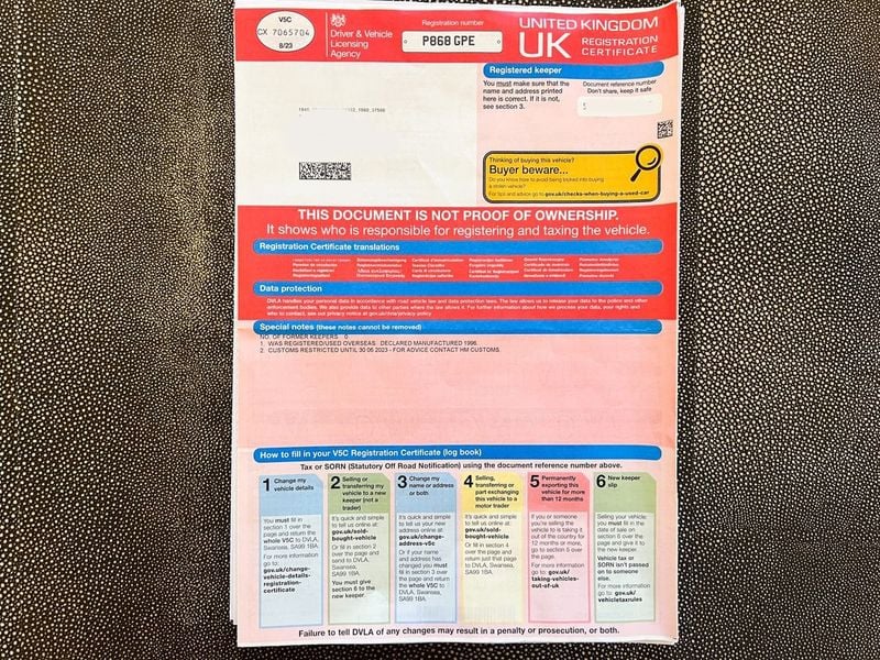 IMG_5295.jpg166.9 KB BEFORE YOU BUY This sale is subject to the Car & Classic Terms and Conditions. By bidding and/or making an offer, you also agree to the following: ✓ The seller is registered as a private seller which means consumer rights stemming from EU consumer protection law do not come into effect. However, you are still covered by Car & Classic’s own Terms and Conditions.. ✓ We request that a non-refundable fee be paid if you are the lucky winning bidder at auction or if your offer is accepted Please refer to our helpful FAQs and T&Cs for specific rates. ✓ This vehicle is “Sold As Seen”, on an “As Is Where Is’ basis and without warranty. Photos and descriptions are solely for guidance purposes and it's customary to carry out a full inspection of the vehicle prior to purchase for your own peace of mind. ✓ VAT is included in the buyer's fee. VAT may or may not be included in the final bid or offer price, as specified in the listing. ✓ We want a smooth transaction just as much as you do and as such we run all UK-registered cars and motorbikes for sale on Car & Classic through an online HPI check to verify that they show no insurance database markers for damage or theft, and have no finance owing, allowing you to bid with confidence. ✓ We also check whether vehicles are recorded as being written off as part of an insurance total loss claim at the time an advert is placed on Car & Classic and we helpfully provide write-off category labels (Cat C/D/S/N) for your assistance. However, the presence or absence of a label does not guarantee the vehicle’s status and it is always worthwhile carrying out your own full vehicle history check before making an offer on a vehicle. ✓ Buyers are responsible for vehicle collection or delivery. Importing vehicles may result in additional customs duties and import taxes so it’s worth checking beforehand..