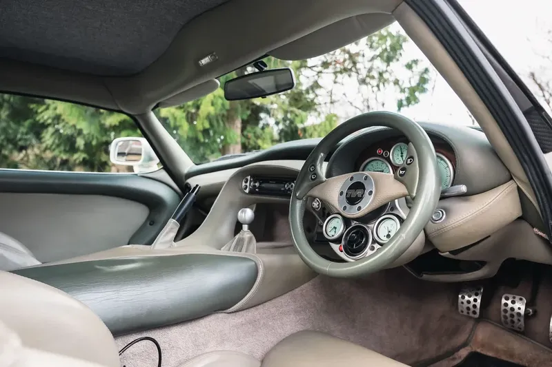 This 1997 example stands apart from the crowd thanks to its rare factory-option pearlescent white paintwork - known colloquially as 'Flip Flop Yellow' - paired with a distinctive Fern Green and Irish Mist two-tone leather interior. It is a combination that is unlikely to be replicated elsewhere, and suits the Cerbera's long-nosed, low-down stance to a tee. The car has been in the current owner's hands since June 2010 and has been garage stored throughout, covering very few miles in that time. It was SORN'd between 2020 and 2025 before being recommissioned and returned to the road, with a service carried out in February 2025 and a fresh MOT obtained.