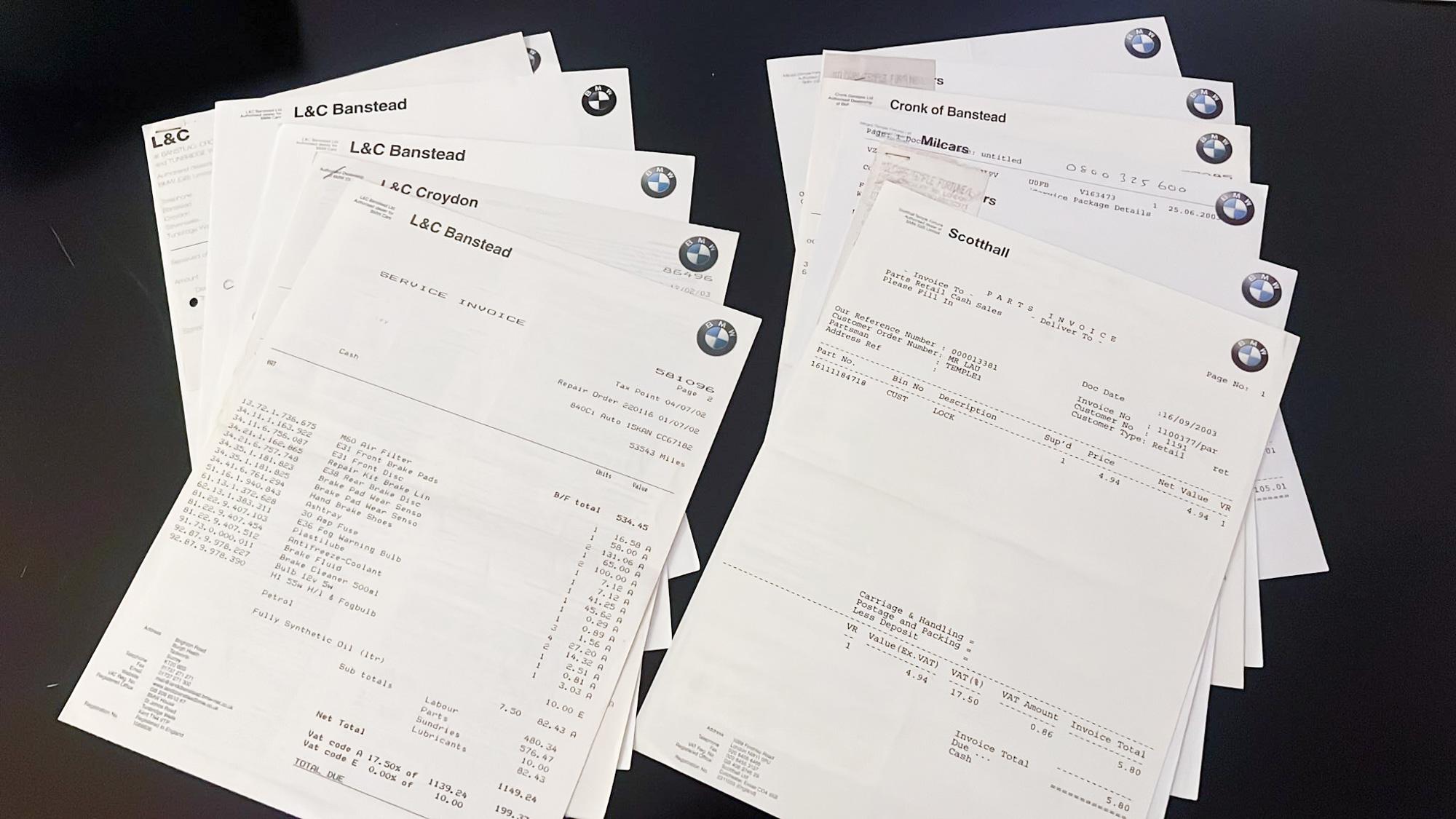 • Numerous invoices from BMW main dealers and independent specialists