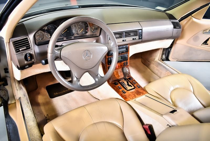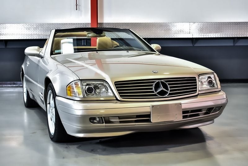 Les R129 SL prennent vraiment leur envol en ce moment, en particulier les exemplaires bien équipés comme cette SL500 de 1999. Présentée en Smoke Silver Metallic avec intérieur en cuir Nappa safran, une combinaison de couleurs sophistiquée qui met en valeur le design intemporel Sacco de la voiture.