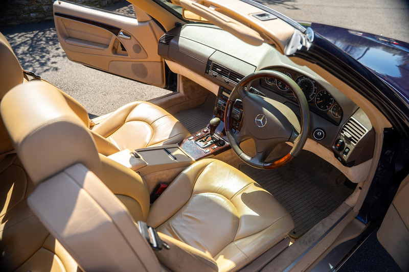 Finished in smart Azurite Blue with a rare Saffron leather interior, this SL320 is the desirable later facelift car with the revised 225bhp V6 engine. The current keeper acquired the car in 2012 as the cornerstone of a small collection. It has been properly cherished ever since, including garage storage in a dehumidified Carcoon.