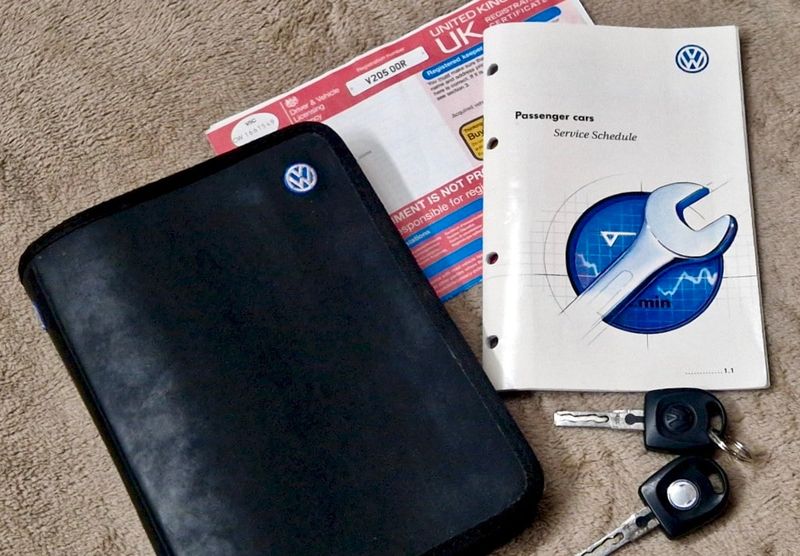 - Completo com o conjunto de manuais original da Volkswagen, incluindo manual do proprietário e livro de manutenção (total de 9 entradas de serviço, incluindo correia de distribuição e tensores aos 48.215 milhas). Sete das entradas de serviço encontram-se carimbadas