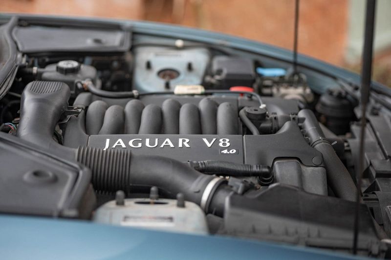 Présentée dans une teinte bleu/vert métallique rare et plutôt séduisante, elle se montre bien dans les zones habituelles de vérification XK8, y compris les bas de caisse, les planchers et les arches arrière. Les jantes d’usine à sept branches ont bénéficié d’une remise à neuf en 2024 et sont équipées de pneus Avon récents et de qualité. Le MOT est valable jusqu’en mai 2026 sans avertissements.