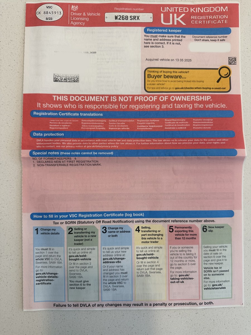 - V5C Brits kentekenbewijs