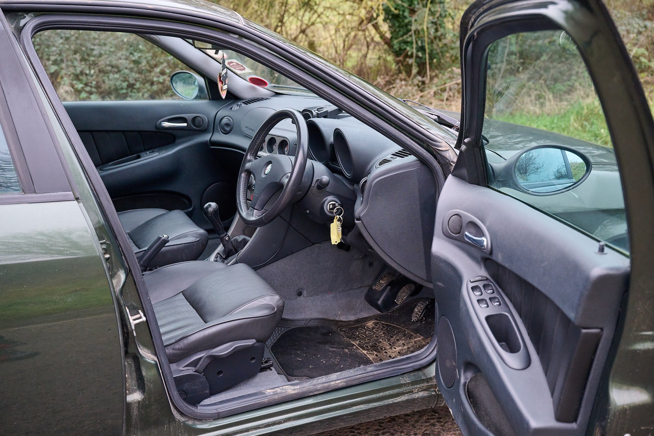 Si les variantes V6 sont attrayantes, les amateurs préfèrent également ce modèle, le 2L Twin Spark, car il offre des performances similaires à celles du V6 2,5L, mais avec un moteur plus léger à l'avant. Cette voiture est finie en vert métallisé élégant et est un modèle Lusso bien spécifié avec tout cuir noir et rare toit ouvrant en verre.