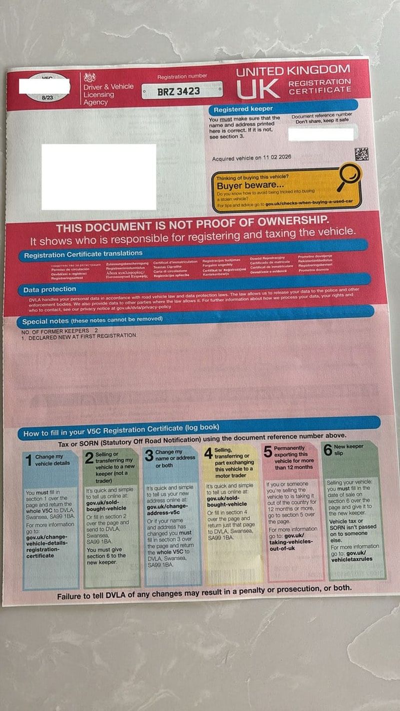 - Private registration plate included in the sale
