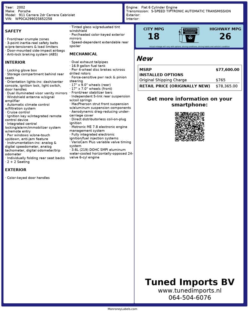• Matching numbers 3.6-liters flat-six på 320hk med 5-växlad Tiptronic automat
