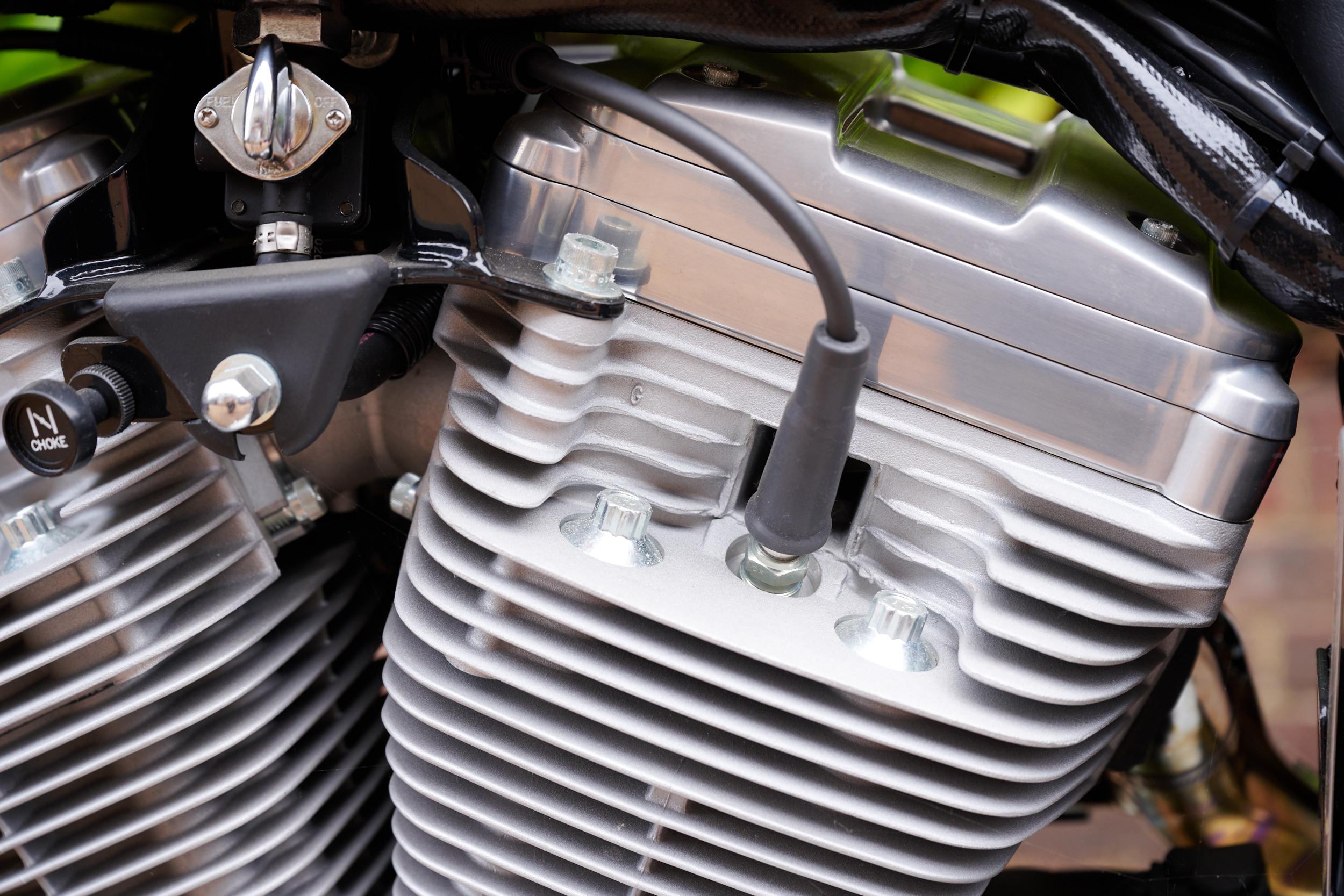 - Moteur bicylindre en V à 4 temps Evolution de 883 cm3, refroidi à l'air et monté de façon rigide, à haute compression