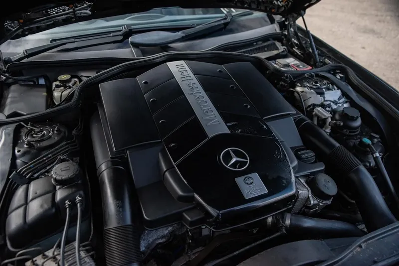 Trotz der „V12“-Badges verbirgt sich unter der Haube der 300 PS starke 5,0-Liter-V8 von Mercedes. Das Serviceheft zeigt, dass das Auto überwiegend von Vertragspartnern gewartet wurde, mit wenigen Kilometern seit dem letzten Service. Der aktuelle TÜV läuft bis April 2026, ohne Beanstandungen.