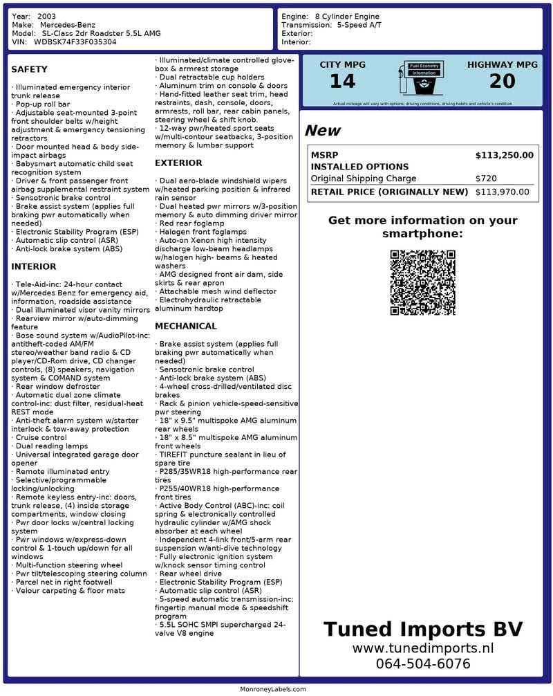 - Window sticker and Mercedes-Benz datacard present, confirming factory specification