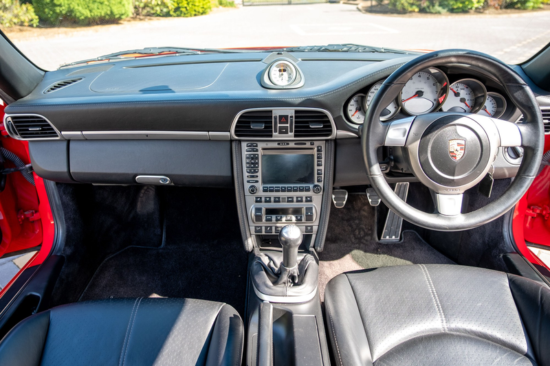 Neben der eindrucksvollen Farbe hat dieser frühe 997 eine wünschenswerte Ausstattung. Er verließ das Werk mit dem einfach benannten "S"-Paket, das den größeren 3,8-Liter-Motor, eine Leistungssteigerung auf 360 PS, bessere Bremsen und das clevere PAMS-Fahrwerkspaket beinhaltet. Der Erstbesitzer dieses Wagens hat außerdem das Sport Chrono-Paket geordert, das weitere Fahrfunktionen bietet.