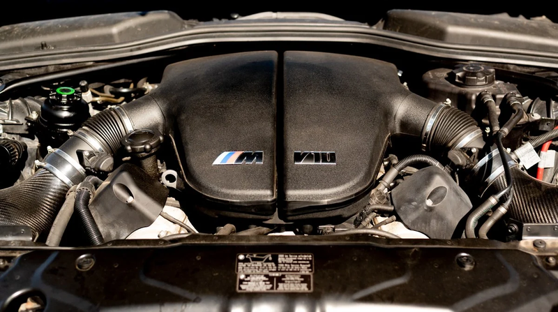 Despite that cossetting approach, he has invested £8,000 in improvements. These include replacing the rod bearings, a common S85 issue, plus new solenoid valves and throttle actuators. The car was serviced 6 miles ago in March 2026 when the rear differential was also reconditioned. It remains standard except for an Eventuri induction kit to dial up the drama of that V10. The OEM unit is included with the sale. The car comes with a usefully long and advisory-free MOT valid to February 2027. The M5-related plate is included.