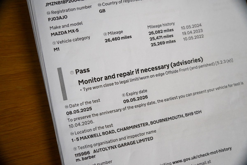 - MOT valido fino al 9 maggio 2026 con un solo appunto per pneumatico