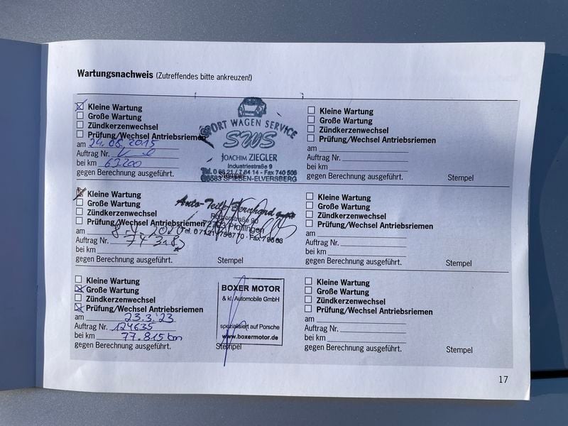 - Porsche certificate of conformity present