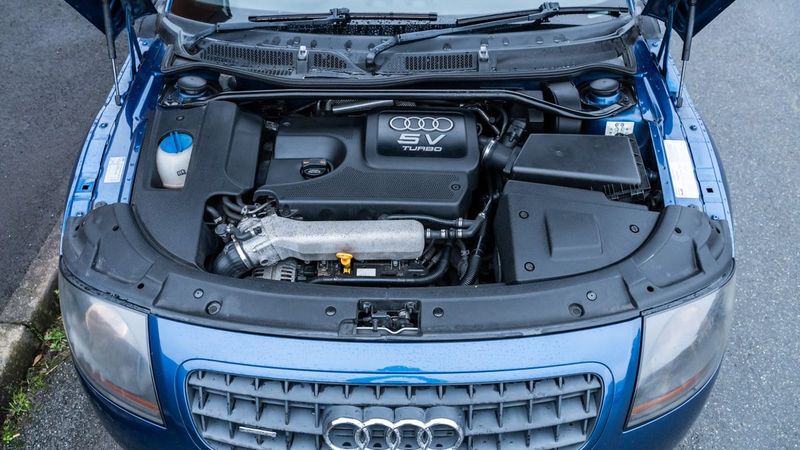 Bilen har haft endast fem ägare under sina 20 år och är i mycket gott skick. Det finns några få mindre kosmetiska punkter att notera, men inget som försämrar dess användbarhet. Inuti behåller den till och med sitt Audi Chorus-ljudsystem under TT-skyddet. Den officiella serviceboken är imponerande, ägarna har samlat så många stämplar - 18 totalt - att det inte längre finns plats. Den senaste servicen var i januari 2026 och kamremmen byttes 2025, ungefär 600 mil sedan. MOT:n gäller till augusti 2026.