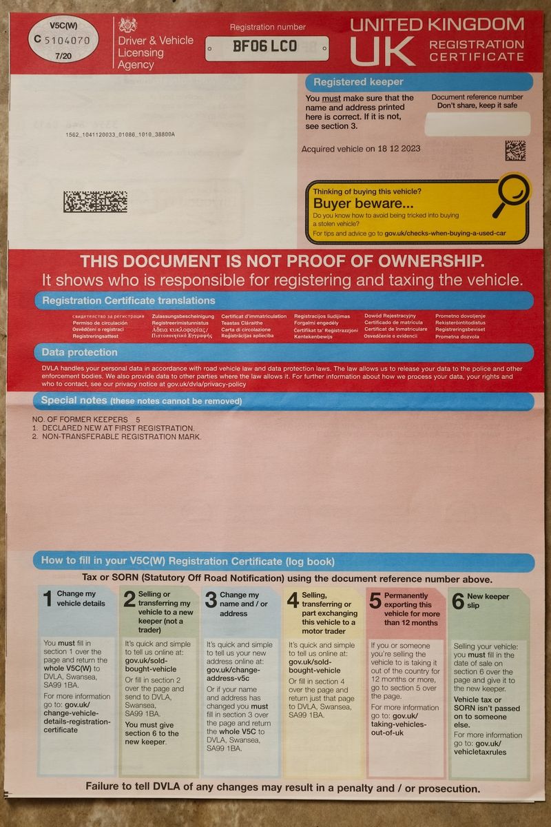 "I bought the car on the 18th December 2023 and since then I have driven 3,232 miles, mostly motorway driving and the car has performed faultlessly and is a pleasure to drive. However, I am selling now as I broke my back in 2024 and I now find it too low. In my ownership it has always had high octane fuel and it has been kept in my drive.