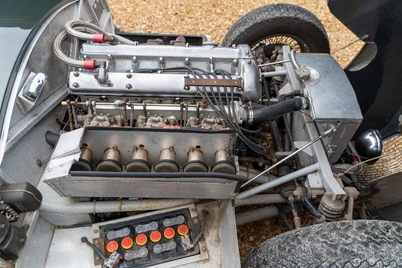 We’ve applauded the depth of detail applied to this C-Type’s cosmetics, and the same is true of the mechanicals. In place of the original’s 3.4L XK engine, there is a 4.2L Jaguar engine. It was rebuilt in 2023 by XK specialist Chris Forbes to what we are told is Club Sport specification featuring triple Webers. It was then tuned by Stanton Motor Sport on its rolling road. The gearbox is a 5spd Supra unit.