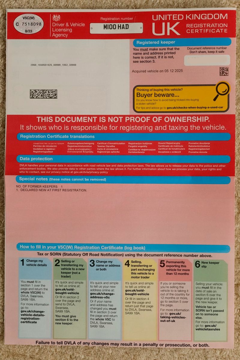 El coche ha recibido servicio regularmente a lo largo de su vida, con frecuencia regresando al mismo especialista para trabajos en la misma época cada año, independientemente de cuántas millas hubiera recorrido. El último servicio fue a los 47,000 millas en 2020 — ha recorrido poco más de 1,000 millas desde entonces. El MOT va hasta noviembre de 2026.