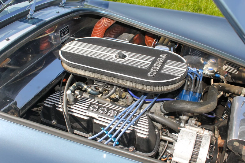 - 3.5L Rover V8 engine with Cobra cam covers and air filter