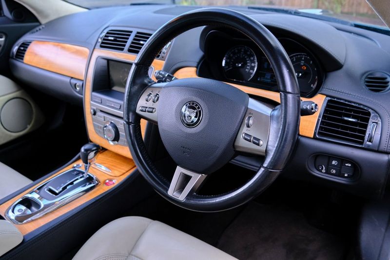 Este X150 de 2008 é um lembrete oportuno de quão bem a Jaguar fazia o que tradicionalmente lhe competia, a saber, construir GTs belos, esculpidos, confortáveis e extremamente rápidos. A pintura metálica verde Sherwood é uma alternativa agradável aos pretos e pratas mais comuns e está, como o resto do carro, em muito bom estado.