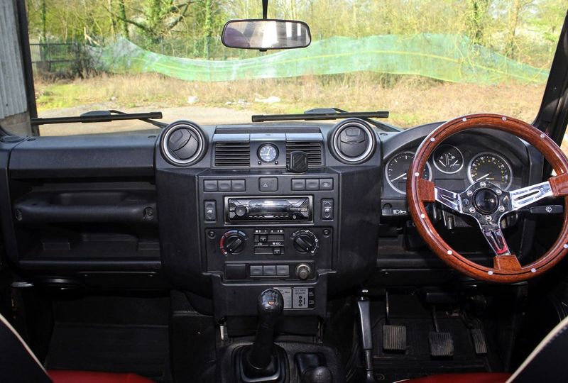 Inuti går denna Duckworth-ombyggda Land Rover bort från sina utilitära rötter mot en mer förfinad cockpit, med svart- och rödtvåtonad klädsel, ett träramt treekrad ratt och uppgraderad Sony-stereo. Denna Duckworth-modifierade Land Rover Defender 90 skulle vara en kapabel följeslagare för off-road-äventyr, samt en sofistikerad helg-skylt i staden.