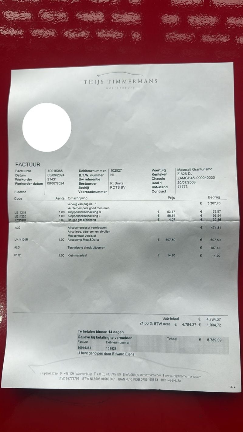 Este GranTurismo beneficia de uma manutenção maior realizada em setembro de 2024, ao custo de €5.789, cujo alcance é detalhado abaixo. O motor é confirmado como de números correspondentes e um relatório Car Vertical sustenta um histórico sem danos. Para quem procura um Maserati GranTurismo bem especificado, este exemplar registado na Holanda merece uma inspeção detalhada.