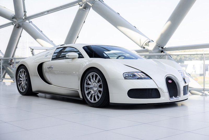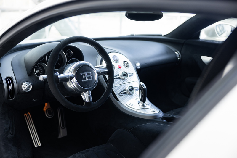Jeder Veyron wurde auf Kundenbestellung handgefertigt. Während viele in dunklen Farben lackiert wurden, gefällt uns das Perlweiß dieses Wagens sehr gut, das nur bei einer Handvoll der 252 gebauten Coupés verwendet wurde. Es unterstreicht die Dramatik dieses Fahrzeugs und hebt das Chrom und andere glänzende Details hervor, die jeden Blick auf einen Veyron so lohnenswert machen.