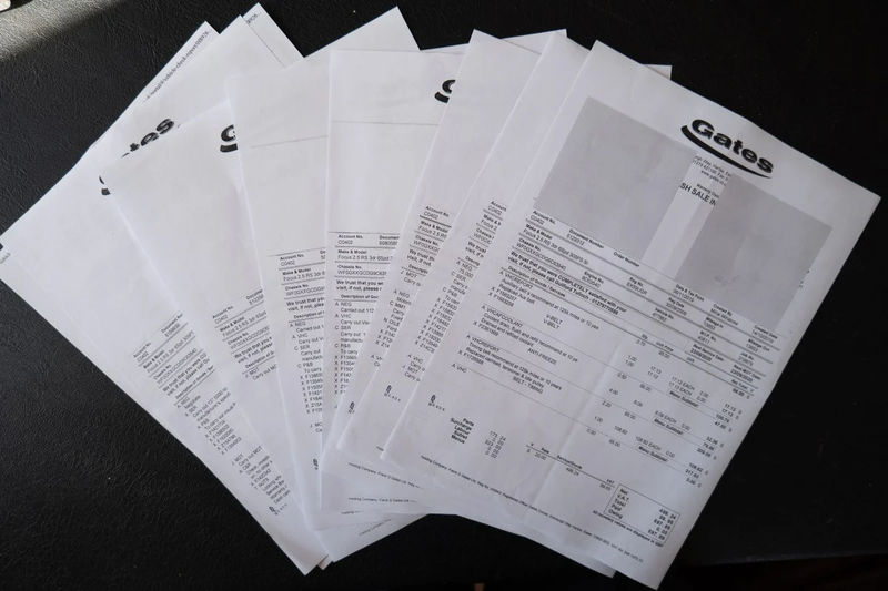 • Manuais do proprietário, livro de revisões, faturas de apoio e V5C fornecidos