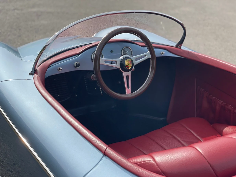 Exemple restauré, resplendissant en Metallic Eisblau (Ice Blue) sur sellerie rouge