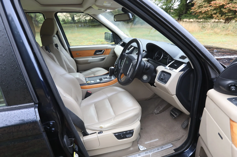 Dieser 2009er Sport ist eine hochwertige HSE‑Ausstattung mit dem leistungsstärksten Dieselmotor, dem 272PS starken 3,6‑L‑Twin‑Turbo‑TDV8. In Dunkelblau mit beiger Lederausstattung, hatte er nur zwei Vorbesitzer in seinem Leben, der aktuelle seit 2012.