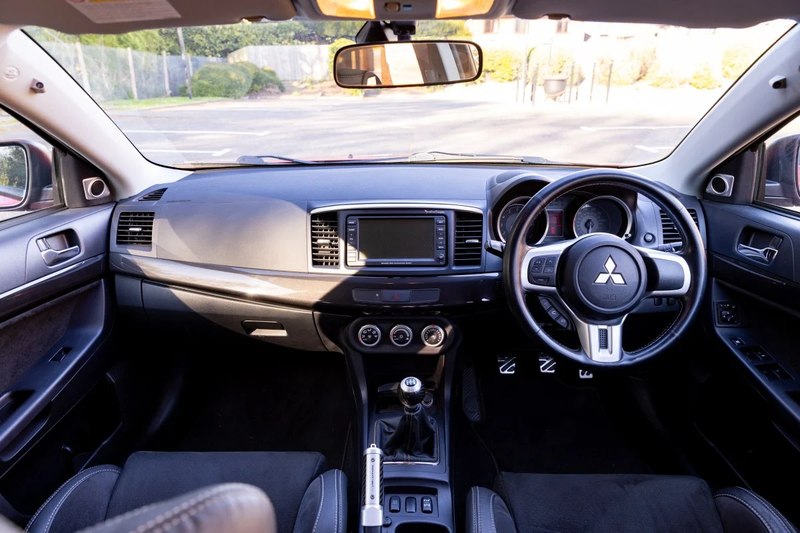 - Black leather and Alcantara interior with 'Evolution X' lettering on the headrests