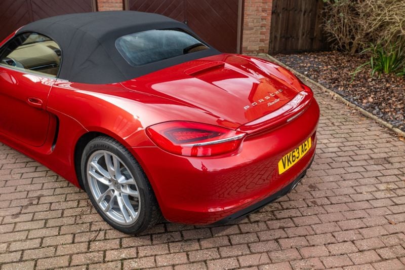 Ao acomodar-se neste Boxster cuidadosamente mantido é como ser transportado de volta a uma sala de exposição da Porsche em 2013. A pintura brilha com uma frescura de fábrica que se estende até às partes da carroçaria normalmente vulneráveis, como os espelhos. O interior é soberbo, com uma paleta de cores bege que se estende desde as portas e painel até à consola central e carpetes; não há sinais de desgaste no volante (bege) nem no pomo de mudança de velocidades a combinar. Para além de um leve desgaste na caixa de pedais, o conjunto dá a ideia de um carro que parece ter sido pouco usado, apesar das tentações óbvias proporcionadas pelo enorme conta-giros central e pela linha vermelha de 7.500 rpm.