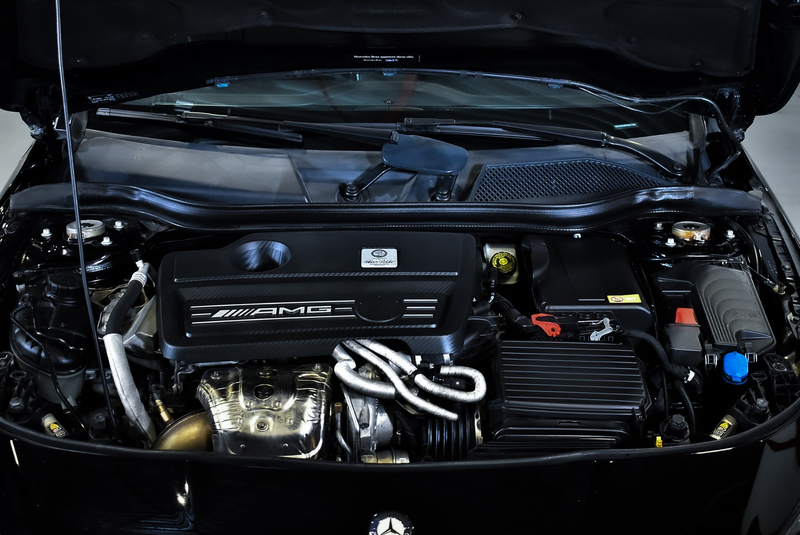 - Hand-built AMG inline-4 turbocharged engine producing 360 horsepower