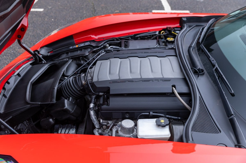 Die Grand Sport übernimmt das aggressive Wide-Body-Design des Z06 und ist in auffälligem Torch Red lackiert, mit kontrastierenden schwarzen Verkleidungen und Rädern. Innen gibt es eine schwarze Lederausstattung mit hoher Ausstattung, einschließlich Targa-Dach, digitalem Armaturenbrett, Bose-Sound und elektrischen Vorderstützen.