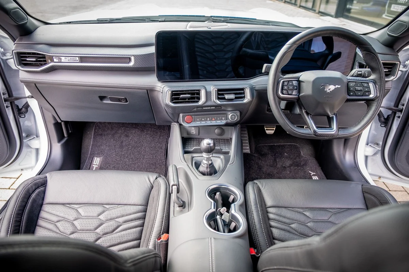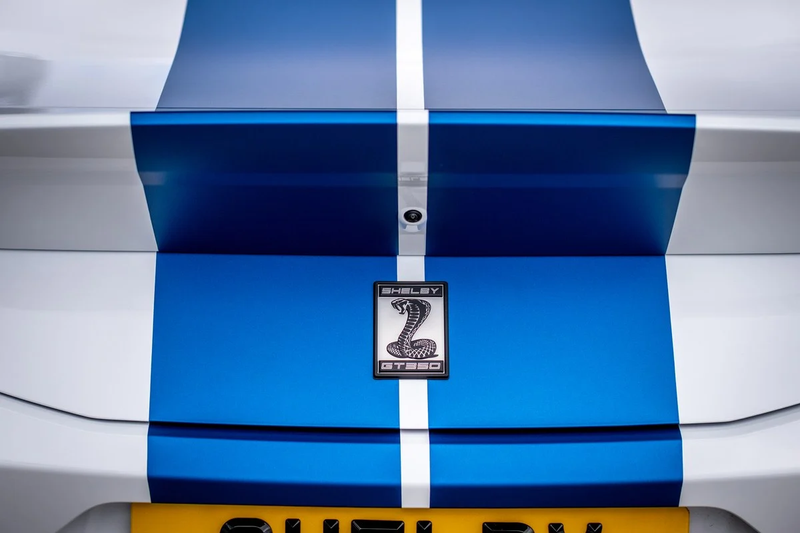 The Shelby references continue inside but are also tastefully done. We particularly like the snake-skin style seats, a nod to the Shelby Cobra. This car has been converted to RHD by Shelby dealer CS Racetech.