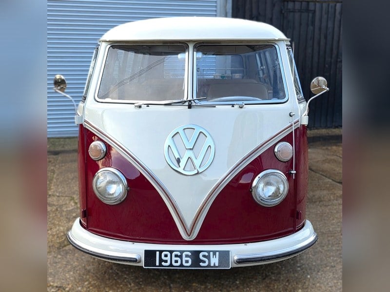 Uno dei nostri autobus preferiti di sempre, che conosciamo molto bene. Trovare un autobus così presto è incredibilmente difficile e lo schema di colori è corretto nei primi colori Volkswagen: verde palma / verde sabbia. Uno dei primi schemi di colore più desiderati di tutti i tempi e l'unico schema che dalla fabbrica presentava una striscia di spillo che seguiva la linea di scarico sulla metà superiore, una caratteristica unica e originale molto apprezzata dagli appassionati. I primi autobus presentano il portellone posteriore piccolo, la luce del freno posteriore centrale e i primi gruppi ottici posteriori rotondi. Questo autobus ha trascorso la maggior parte della sua vita in un clima secco, il che significa che quando è stato importato nel Regno Unito, diversi anni fa, la parte inferiore e l'intera scocca erano praticamente prive di ruggine e costituivano la base perfetta per il restauro, che ha richiesto solo una leggera preparazione della carrozzeria. La lavorazione del metallo è superba e la parte inferiore è pulita e asciutta, non essendo stata annerita o ricoperta da alcun tipo di rivestimento spesso per tutta la sua vita. La lavorazione del metallo è visibile con i propri occhi e basta uno strato di ceralacca trasparente per prevenire la ruggine per gli anni a venire. Questo autobus è onestamente uno dei migliori autobus che abbia mai guidato, avendo ricevuto diverse migliaia di sterline di aggiornamenti da parte dei rinomati specialisti VW; Type 2 Detectives. L'unità 1600 Twin Port completamente ricondizionata con carburatori Weber doppi che fornisce un'incredibile quantità di potenza è stata appena installata con grande spesa. Il motore ha appena fatto 500 miglia di rodaggio. La scatola del cambio ricondizionata e l'assetto ad asse rettilineo posteriore marca la massima qualità di guida, il che significa che l'autobus viaggia facilmente a 70 miglia orarie. Sono stati installati anche freni a disco anteriori, un sistema di frenata a doppio circuito e un cambio rapido Gene Berg per aggiungere ulteriore esperienza di guida! Gli interni su misura da noi costruiti e installati includono un headliner in tessuto di lana completo in beige caffè come da specifiche VW degli anni '50, rifinito ordinatamente fino alla linea di cintura, che sembra assolutamente stupefacente e al 100% indicativo di questa epoca di VW. Abbiamo installato un letto rock n' roll a tutta larghezza che risplende con tappezzeria in vinile color beige caffè e bordature. Si tratta di un sedile posteriore per 3 persone che si abbatte per marcare un lungo e comodo letto matrimoniale ideale per il campeggio. I lavori di falegnameria su misura e il tavolo staccabile sono stati costruiti da noi stessi secondo i più alti standard in rovere impiallacciato con piani di lavoro, cassetti e armadi in formica verde chiaro. Maniglie originali degli anni '50 con maniglie in stile rondine per i cassetti e tende ispirate alle rondini per il tema generale dell'interno. Cinture di sicurezza originali installate in un secondo momento e anche una radio Retrosounds e un altoparlante nell'alloggiamento della radio originale che sembra d'epoca ma è dotato di connettività IPhone e radio DAB. Nel complesso uno dei migliori esempi sul mercato di oggi, questo è un autobus che può essere saltato su e guidato ovunque con un giro di chiave!