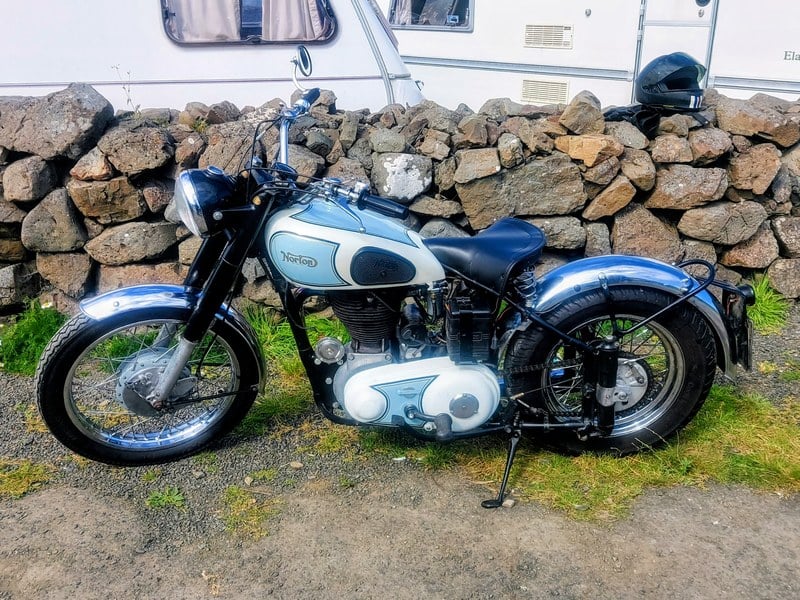 1964 Norton Atlas 750cc twin cylinder motorbike, registration number 177 HUU, with V5c. Having rebuilt wheels with alloy rims and stainless steel spokes, twin leading shoe front brake, new tyres circa 1000 miles ago, Boyer Bransden electronic ignition and Siamese exhaust. Purchased by the vendor 9 years ago and much enjoyed but little used in recent years, hence the sale. Ridden by the vendor to the saleroom and when photographing the bike (a few weeks later) it fired up first kick. Together with two original Norton brochures.