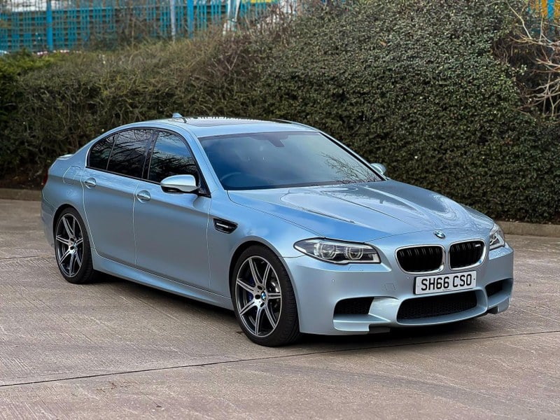 Very well presented BMW M5 in striking Silverstone II metallic with black extended merino leather interior. Originally supplied new by John Clark Aberdeen and has spent most of its life in Scotland. Full and comprehensive BMW main dealer service history. File full of supporting paperwork with every service invoice. 11/ 12/ 2013 @ 13762 miles John Clark Aberdeen. 28/ 10/ 2014 @21, 942 miles John Clark Aberdeen. 25/ 08/ 2015 @ 29485 miles John Clark Aberdeen. 11/ 08/ 2016 @ 37036 miles John Clark Aberdeen. 11/ 05/ 2017@ 41090 miles John Clark Aberdeen. 06/ 06/ 2019@ 52591 miles John Clark Aberdeen. 13/ 10/ 2020 @ 56289 miles John Clark Aberdeen. 07// 07/ 2021 @ 59247 Harry Fairbairn Inverness. Current mileage 65127. Recent full wheel refurbishment to OEM standard along with new valves. Matching Michelin PS4 tyres fitted. Particular options include comfort access, soft close doors, powered boot lid, adaptive headlights, high beam assistant, head-up display, professional speaker system, reverse camera, split-folding rear seats. Tracker fitted. Recently clay barred, machine polished and waxoyled. Extended BMW warranty until Nov 22 which is transferable to the new owner. Currently wants for nothing. I am the 5 the owner. Private plate not included. Please contact with any further questions, many more photos on request. Located 15 minutes from Heathrow.