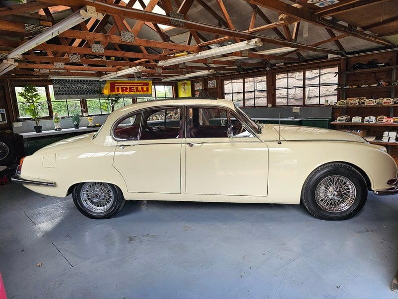 Craner classics is delighted to offer this 1966 Jaguar s-type 3. 8 saloon in British racing green introduced in 1963, the jaguar s-type was intended to bridge the gap between the company’s existing Mkll and MkX models. Boasting a similar visage to the former and adapted version of the latter’s independent rear suspension, the newcomer also featured a higher-geared Burman power steering set up and an updated heating and ventilation system. The more sumptuous interior included a MkX style walnut fascia and wider front seats etc.