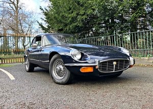 Previously sold by ourselves and now on offer again due to a change in the owners circumstances. Jaguar E Type V12 2+2 Manual UK car. Very Early Production Number, Registered 09/ 11/ 1971. Finished in Jaguar Dark Blue with Grey Leather interior. Chrome Wire Wheels, recent service, and MoT. Rare UK Manual car of which there were only 855 produced with the manual transmission. Superb service history with MoTs going back to 1987. Photographs and letters from previous owners to substantiate the mileage and history including an email from one of the previous owners who's husband sadly passed away so in 1993 she decided to buy her dream car, she kept the car until she parted with it in 2005 as she was using the car less and less. We also have a list of names etc of the previous keepers. The car has been in storage from late 2018 till around June of last year when we recommissioned it and had the fresh MoT done. Superb panel gaps, paint is superb with a deep gloss, new carpets, seats and the interior has been been re connollised or replaced, where necessary, chrome is all good, engine, gearbox etc all perform as they should, carburettors recently rebuilt, brand new chrome wire wheels, modern but period stereo with Bluetooth now fitted.