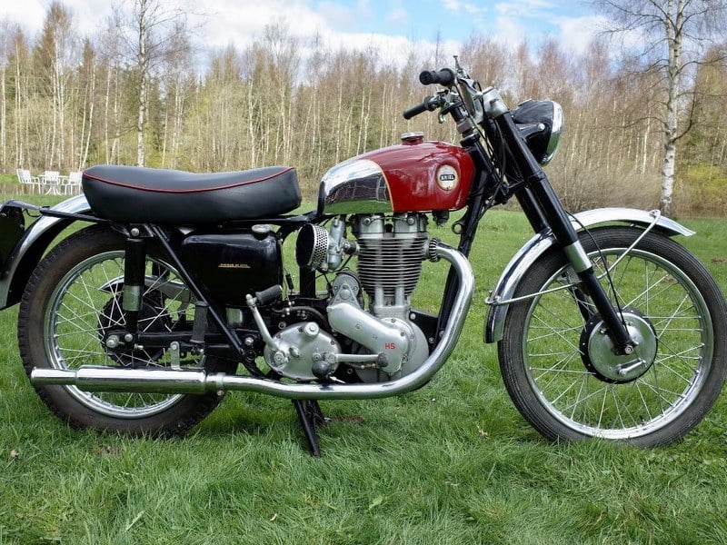 A beautiful and rare Ariel HS, the competition version of the Red Hunter, produced between 1954-1958 only (HS stood for Hunter Scrambler). They were intended to compete against BSA Gold Stars on the track, and were indeed powerful, purpose built bikes in their day.
