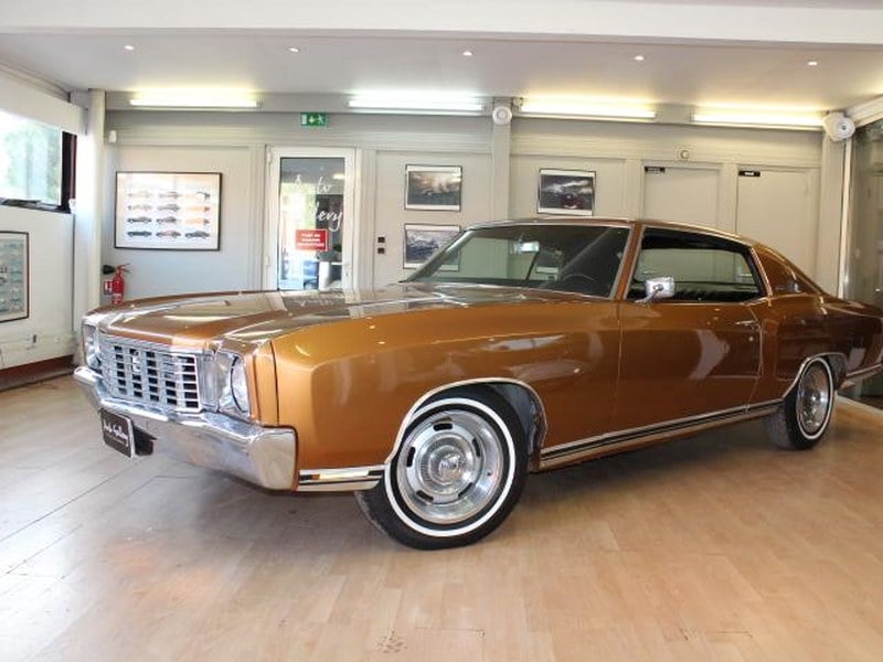 This Monte Carlo is equipped with an automatic transmission, V8 engine, 4-barrel carburetor, power steering, dual exhaust outlets, chrome bumpers, 2-spoke steering, SunPro instrumentation, Bridgestone white-line tires, 15-inch steel wheels, and a full-size spare tire. Convenience features include comfortable bucket seating, air conditioning, dual-side rearview mirrors, sun visors, glove compartment, manual-crank windows, and a Delco radio.