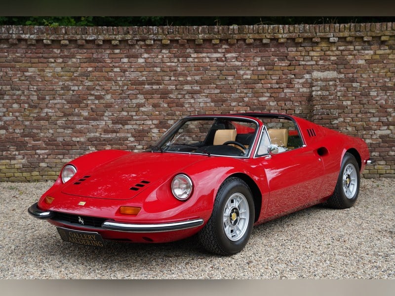 Presented in good order throughout the Ferrari looks superb. The coachwork retains a deep shine and is generally in good condition although as expected with a frequently used example there are some minor signs of age, notably two small cracks at the front, along with some light fading to the chrome work in areas. The interior of the Dino is presented very well, the seats are virtually unmarked and the original Veglia dials are working as they should, the door cards and carpets are smart and the removable targa roof is in good working condition.