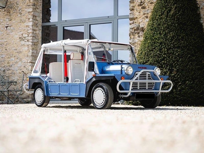 MINI MOKE 1984 - Der Mini Moke ist ein kleines, frontgetriebenes Nutzfahrzeug sowie ein Reise- und Freizeitcabriolet. Er wurde zunächst als leichtes Militärfahrzeug von der British Motor Corporation (BMC) entwickelt und hergestellt und später unter den Marken Austin, Morris, Leyland und Moke für den zivilen Gebrauch vermarktet. Der Moke ist bekannt für sein einfaches, geradliniges, türloses Design. Die BMC-Fabrik in Cowley begann im Januar 1964 mit dem Bau von Mokes bis 1968, dann in Australien zwischen 1966 und 1981 und schließlich in Portugal zwischen 1980 und 1993, als die Produktion nach fast 30 Jahren eingestellt wurde. Der ursprüngliche Moke wurde von Sir Alec Issigonis und John Sheppard entworfen. Als Issigonis den Mini entwarf, plante er ein weiteres Fahrzeug, das die mechanischen Teile des Mini übernehmen sollte, aber eine robustere Karosserie hatte. Dies war ein Versuch, Land Rover einen Teil des Militärfahrzeuggeschäfts abzunehmen. Als die Produktion des australischen Moke zurückging, wurde die Fertigung zwischen 1980 und 1984 an die portugiesische Tochtergesellschaft von British Leyland, das IMA-Werk in Setúbal, übertragen. Im Jahr 1984 wurde die Produktion in das Werk Vendas Novas verlagert. Im April 1990 verkaufte British Leyland (damals Rover Group) den Namen "Moke" an den Motorradhersteller Cagiva in Bologna, Italien. Die Produktion wurde in Portugal unter dem Dach von Cagiva bis 1993 fortgesetzt. Dieses Exemplar wurde vor kurzem einer vollständigen Restaurierung unterzogen. Es befindet sich in einem beneidenswerten Zustand.