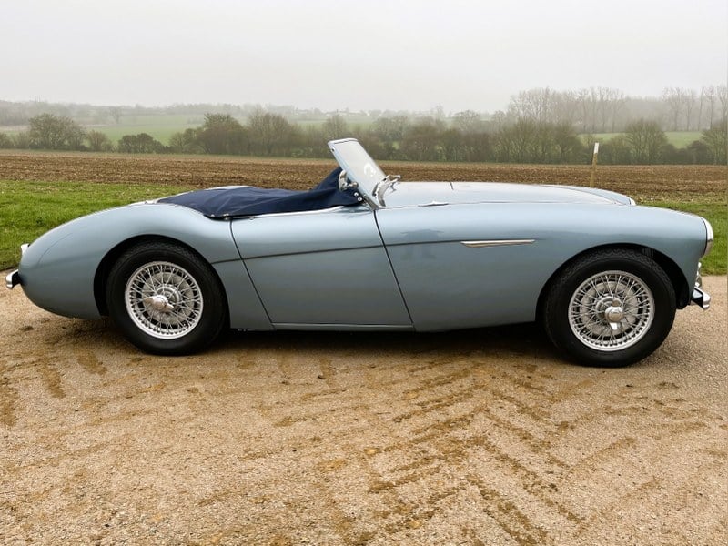 This brilliant restaured example, a 1962 3000 Mk II BT7, matching number is finished in Healey Blue and has a black leather interior, black tonneau cover and black convertible top. Centreshift four-speed manual gearbox with electric overdrive, side curtains. It' very solid and fast. It is the kind of car that you can just get in and go. There are few experiences more enjoyable than driving a Big Healey roadster, and this very strong example lends itself extremely well to that.