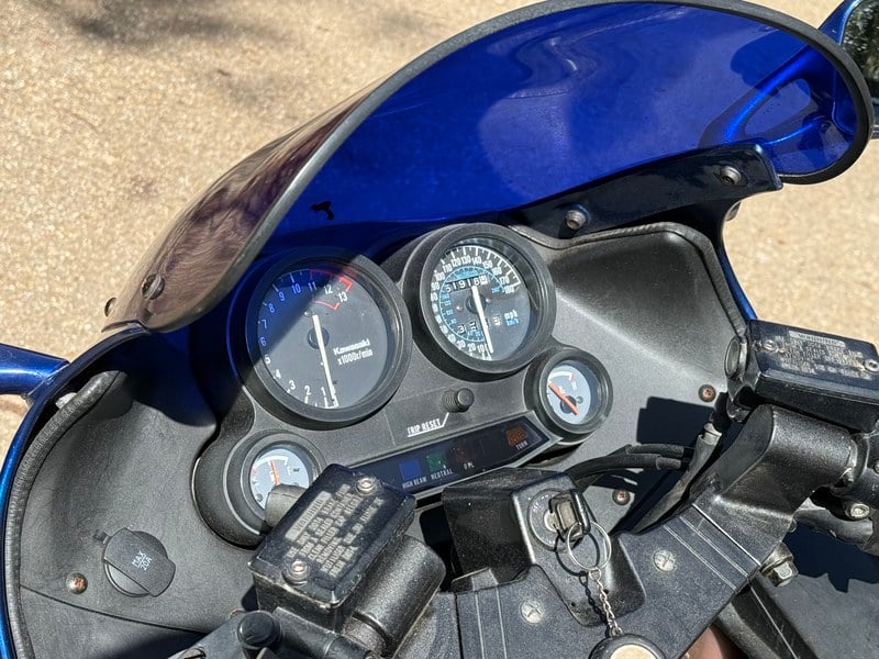 1989 Kawasaki ZX10 in blue. Only 2 owners and 60713 miles. Date of registration 17/ 02/ 1989. Handbook present. Kawasaki’s flagship sports bike of the late 80’s having only 2 owners in 36 years. Sold as a running project.