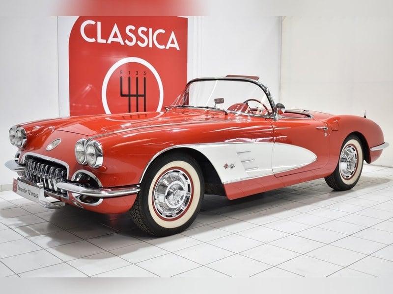Originally delivered in Nevada, the car underwent a full body-off restoration in the 1990s. It is attractively finished in Polo White with a red interior, a classic colour combination that perfectly highlights the Corvette’s sporting elegance. Although the paintwork can be described as neat, it shows light traces of age and use, adding to its authentic 1950s character.