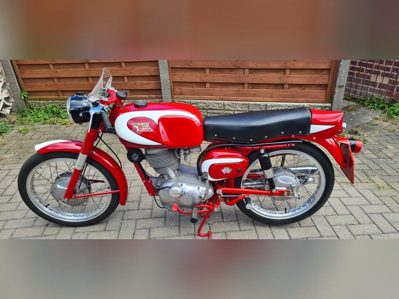 Moto Morini founder Alfonso Morini split from MM in 1937 setting up a foundry in Bologna. Post-WW2 he returned to motorcycle manufacture, commencing with a 125cc two-stroke and then a similar-sized SOHC four-stroke single. The company was active in racing right from the start, and won the Italian national 125 championship in 1949. Something more sophisticated was required for the World Championships however, a new DOHC design being introduced for 1952. 175cc and 250cc twin-cam racers followed, but although the firm did achieve a few successes in Grands Prix, it lacked the resources for a sustained attack on the Championship. Although never a Grand Prix category, the 175cc class was an important one in Continental Europe and for this Moto Morini offered the Rebello DOHC racer alongside its simpler road models such as the 175cc Turismo offered here.