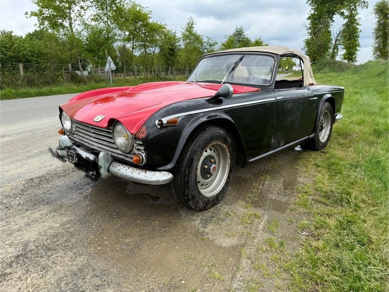 UK Triumph TR5 with overdrive. The car has covered 9562 miles since having had a full body off chassis restoration and is still in beautiful condition. It was built to be driven having the following specification: Stainless steel exhaust manifold and sports exhaust system, alloy radiator, oil cooler, electric cooling fan, hi-torque starter motor, up rated throttle linkage kit, up rated shockers, Poly bushed suspension, Bosch fuel pump conversion, electronic ignition and up rated front brakes. Other features are: leather seats, Moto-lita steering wheel, Walnut dashboard, Mohair hood, walnut dashboard and matching door cappings.