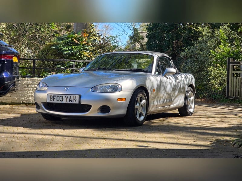 1999 Mazda MX-5 Mk2 1. 6. Metallic Bronze with black cloth interior and NEW black Mohair hood. 123, 459 miles. 15 inch alloys with NEW tyres. Excellent condition. CD/ Tuner. Polished stainless Style Bars.